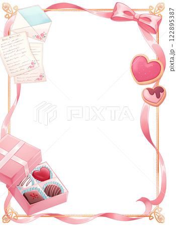 帶有散落絲帶的框架 — 綠色和粉紅色