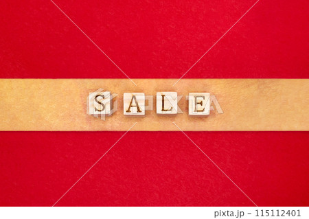 紅色背景上帶有銷售字母塊的彩色條紋方形語音氣泡