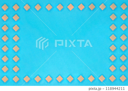 藍色背景上的方塊排列成帶有乘法符號的菱形