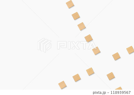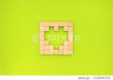 黃色背景上的方塊的前視圖,排列在具有乘法符號方形形狀的正方形中