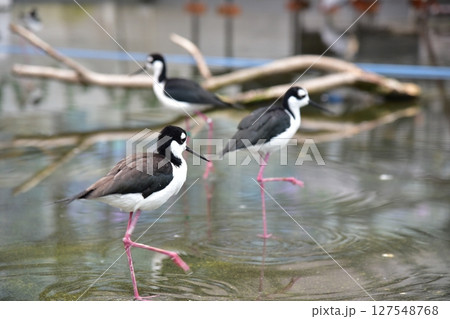 鳥兒在水面上並肩行走