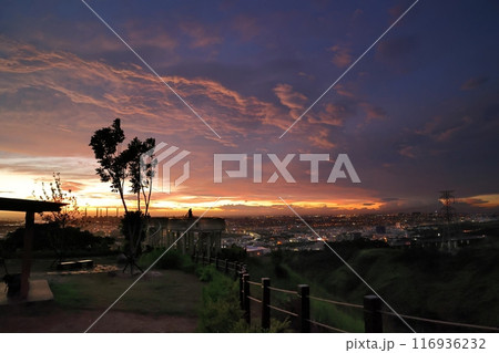 清晨從臺中大肚山遠眺中央山脈的美麗山景