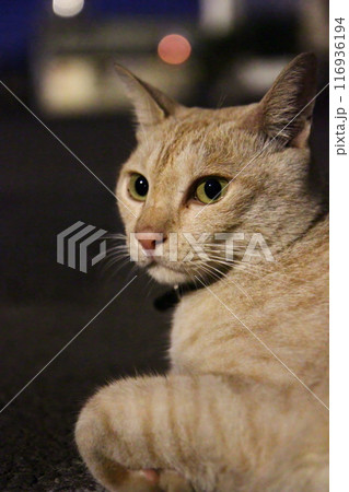 春天的菜園裡,小橘貓警戒的樣子很可愛
