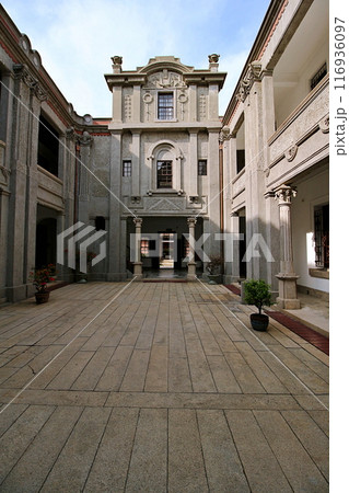 黑枕藍鶲(Hypothymis azurea)棲息在有葉子的樹枝上