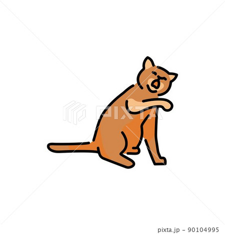 Sitting cat sharpens its claws color line icon. Pictogram for web page