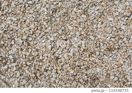 Close-up of small, multicolored gravel stones creating a rough, natural texture.