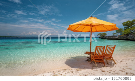 Beach scene with orange umbrella