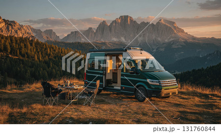 Van life sunset in mountains