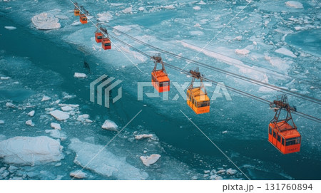 Cable cars glide over icy waters