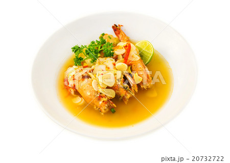 Boiled king prawns with garlic