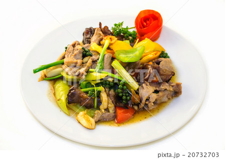 Mussels fried with vegetables and Thai sauce