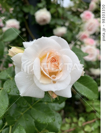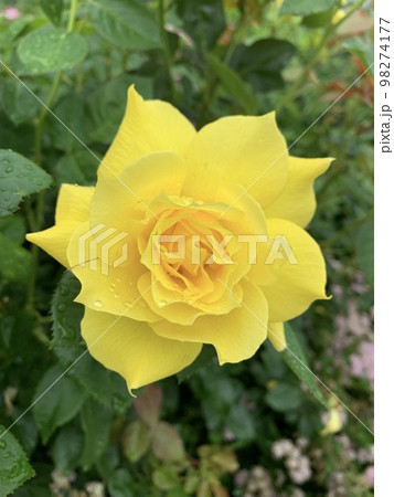 黃玫瑰濕潤了雨