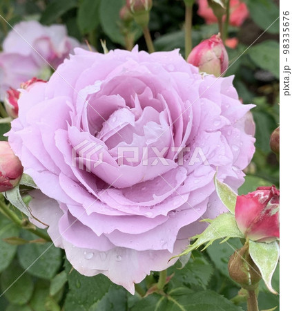 粉紅色的玫瑰在雨中濕潤