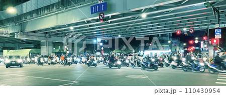 台灣風景_夜間數十輛摩托車經過台北大橋