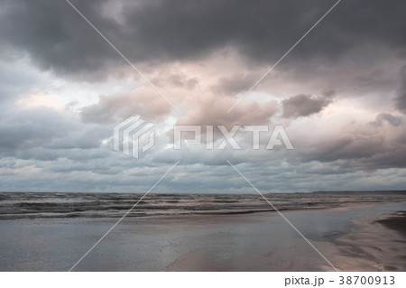 初冬日本海覆蓋著厚厚的三種顏色的雲彩