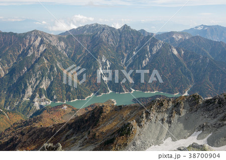 在與北阿爾卑斯山立山和Omaezawa冰川的距離看見的黑部湖