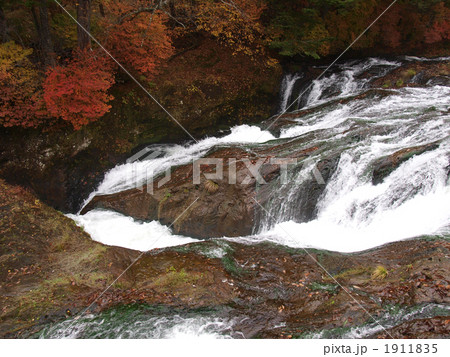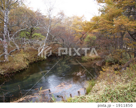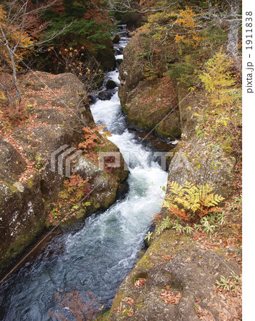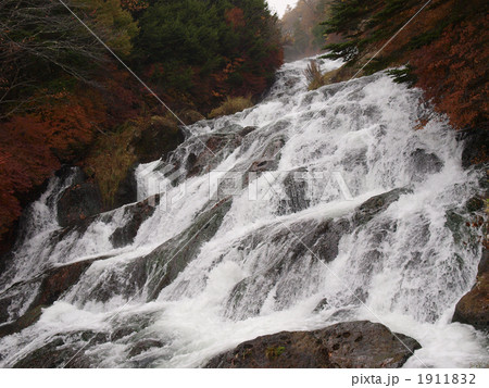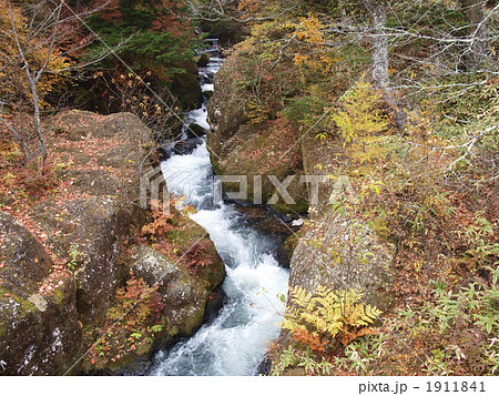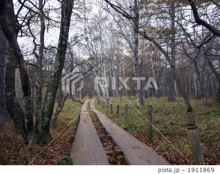 Oku-Nikko在秋天在毛茸茸的Sakigahara的樹路上吸煙