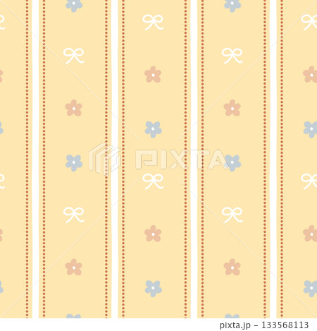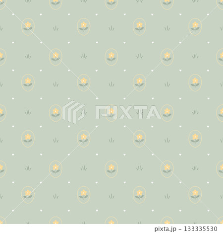 seamless minimal flower and ribbon repeat pattern in yellow and green color background, flat jpg illustration graphic design