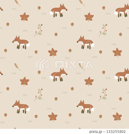 seamless minimal autumn season with fox repeat pattern background, flat jpg illustration graphic design