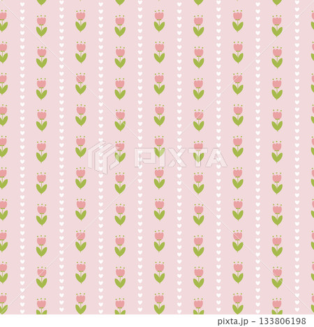 seamless minimal tulip flower repeat pattern plaid checkered background, flat vector illustration graphic design