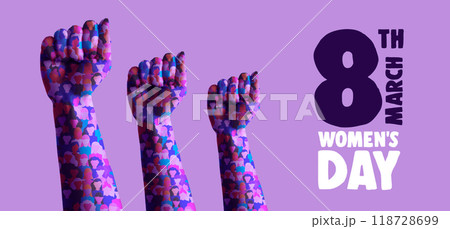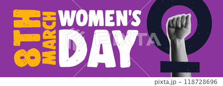Women Day 8th March fist up power sing collage vector illustration