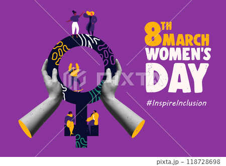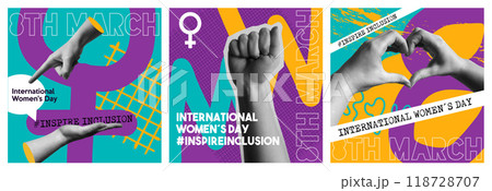 International Womens Day 8th march inspire and incluison collage illustration set
