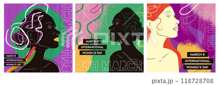 International Womens Day 8th march abctract silhouette woman illustration set