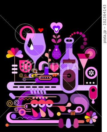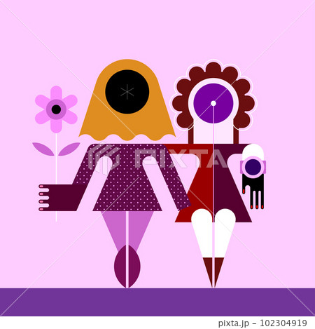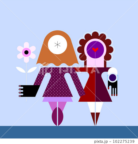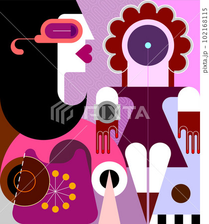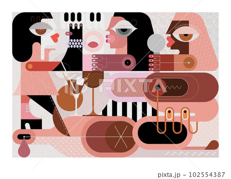 Group Of People And Abstract Geometric Shapes Neon Line Art