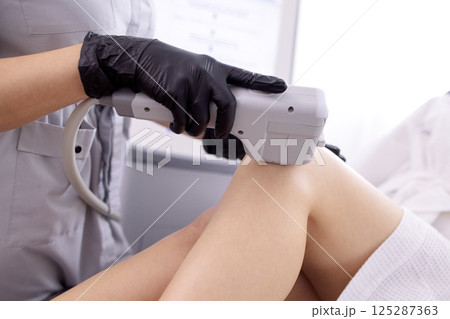 Hair removal procedure. Cropped shot of young fit woman client receiving laser hair removal procedure