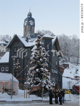 即使在暴風雪中也舉行聖誕市場和城市教堂
