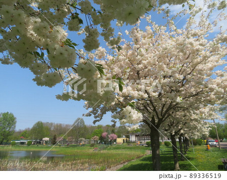 白色重瓣櫻花和盛開的白色神秘櫻花