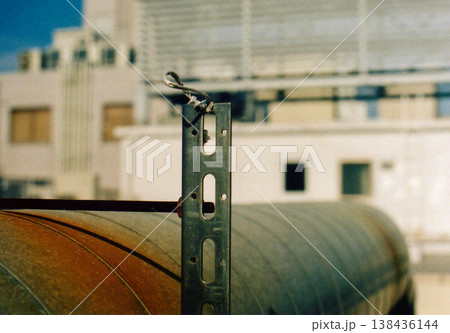 建築工地鋼結構支撐柱與生鏽的管道:建築圖片