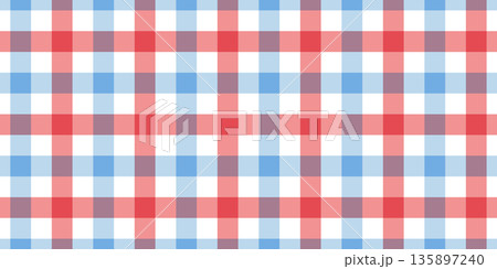 Red and blue gingham fabric seamless pattern. Cute check plaid. Picnic kitchen tablecloth texture. Gingham square vintage texture. Vector illustration isolated on white background