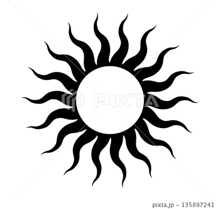 Tribal gothic sun symbol. Tattoo design. Star graphic geometric shape. Mystic black sun icon. Traditional ethnic art design element. Vector illustration isolated on white background