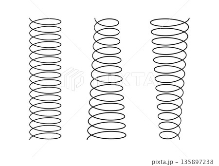 Spiral spring set. Metal wire coil spring icon collection. Thin zigzag waves symbol. Flexible coil shapes. Loop line pattern. Vector illustration isolated on white background