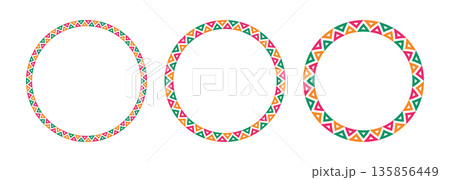 Mexican pattern circle frame set. African ethnic motif border. Aztec triangular ornament round frame. Mexican frame. African ethnic culture ornament. Vector illustration isolated on white background