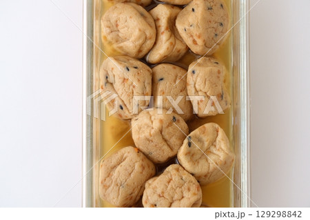 飽滿的炸豆腐的軟棕色與醋飯(解凍前)的亮白色形成鮮明對比