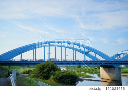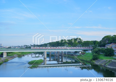 夏日清晨的陽光透過多摩川大橋照射進來 - 多摩川下游(東急東橫線)