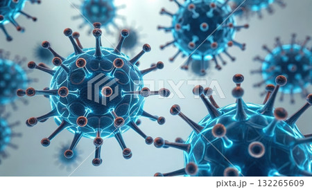 Computer-generated virus representation highlighting molecular-scale nanotechnology and particles