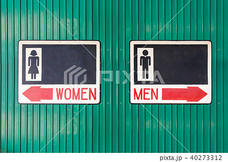 Man and woman toilet sign with two arrow