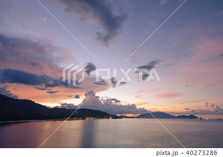 Blue ocean sea and twilight blue sky in sunset