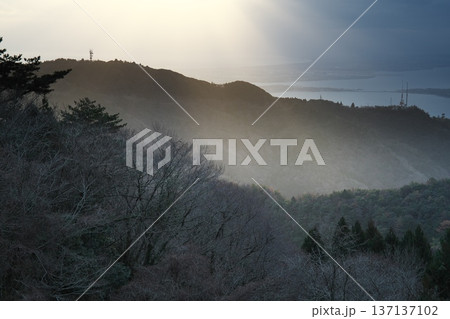 鳥取縣弓濱半島的伯耆大山秋日日出
