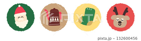 聖誕老人、馴鹿、襪子、鍋子、聖誕手繪貼紙風格材料