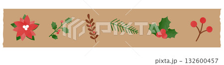 時尚的聖誕植物遮蔽膠帶材質:一品紅與冬青