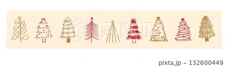 一張印有聖誕樹和禮物圖案的遮蔽膠帶。聖誕水彩繪本。