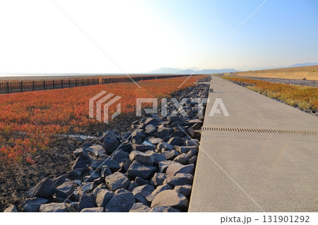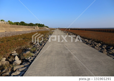 夕陽和被夕陽輕輕染上色彩的冬日大海