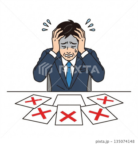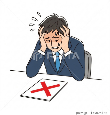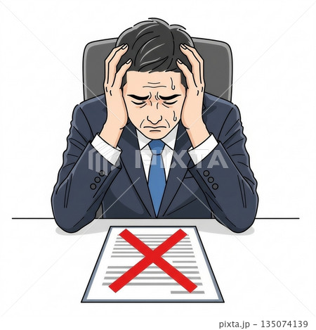 一張簡單的插圖,描繪了一位商人摀著頭。