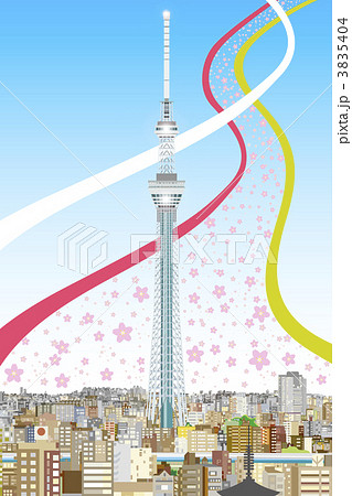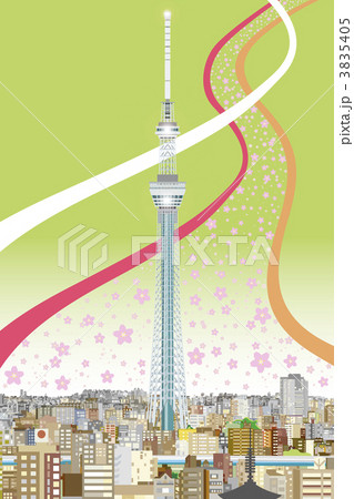 天空樹跳舞櫻花樹〜風景與天空樹·春天(綠色)