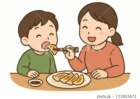 AI插圖(盤子裡的煎餃、醬汁和筷子)