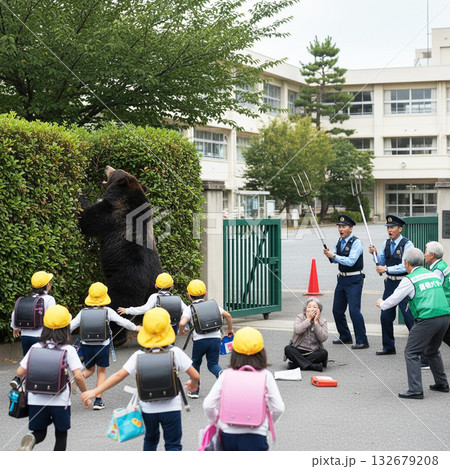 人工智慧產生的圖像(熊襲擊上學途中的兒童)